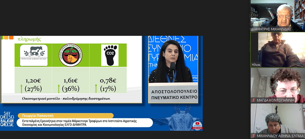 - Εντυπωσίασαν τα στοιχεία της έρευνας «Προθυμία πληρωμής καταναλωτών για βιώσιμες πρακτικές στην φέτα», ότι το 36% των αστών καταναλωτών αποδέχονται να πληρώσουν επί πλέον 1,61€/εβδομαδιαία κατανάλωση τυριού (περίπου 0,500 gr) για προϊόντα Δίκαιων Συνθηκών Εργασίας, ότι το 27% των αστών καταναλωτών αποδέχονται να πληρώσουν επί πλέον 1,20€/500gr για τυρί από καλή διαβίωση των ζώων και ότι το 17% των αστών καταναλωτών αποδέχονται να πληρώσουν επί πλέον 0,78€/0,5kg για τυρί με μικρό ανθρακικό αποτύπωμα … Δρ Γ. Παπουτσή.
