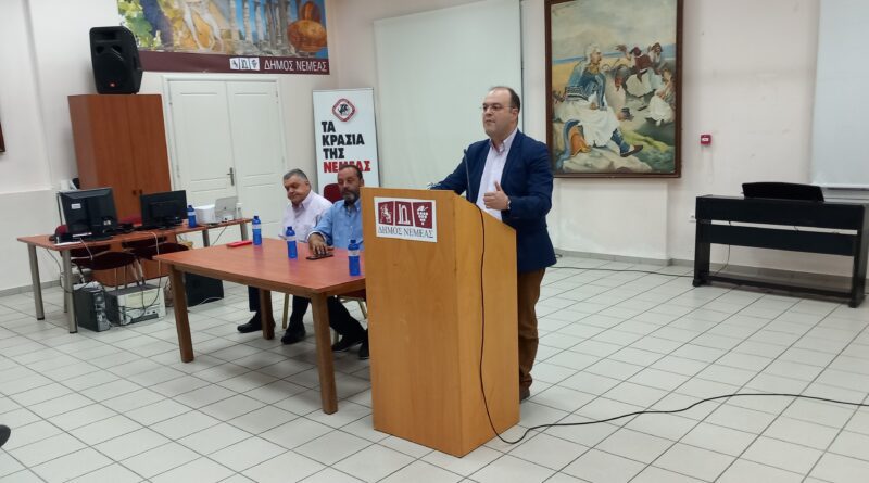 Ομιλία στο δημαρχείο Νεμέας, πραγματοποίησε ο υποψήφιος περιφερειάρχης Πελοποννήσου, Δημήτρης Κουτσούλης, την Τρίτη 19 Σεπτεμβρίου, στην κατάμεστη αίθουσα πολλαπλών χρήσεων του Δημαρχείου.