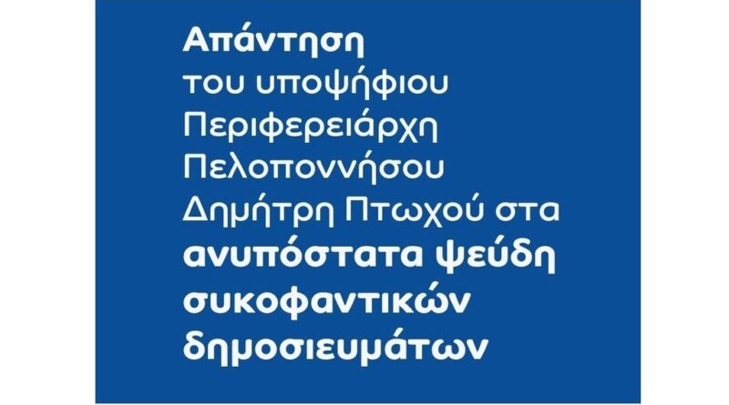 Απάντηση του υποψήφιου Περιφερειάρχη Πελοποννήσου Δημήτρη Πτωχού στα ανυπόστατα ψεύδη συκοφαντικών δημοσιευμάτων