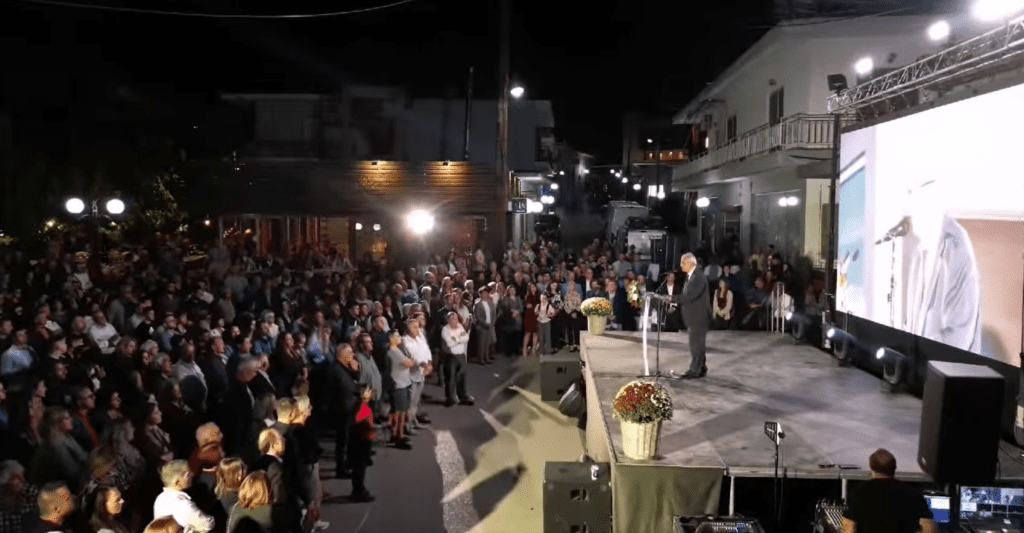 Η ομιλία του υποψηφίου Δημάρχου Νεμέας Κωνσταντίνου Φρούσιου στη Νεμέα, Παρασκευή 6 Οκτωβρίου 2023 στο εκλογικό κέντρο.