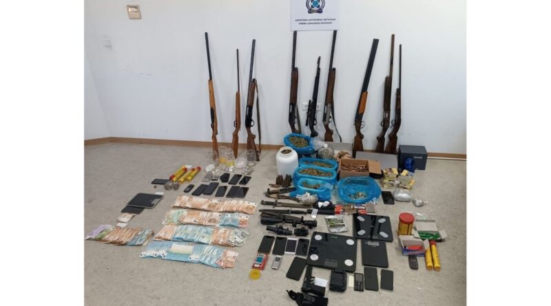 Κατάσχεση 7 κιλών κάνναβης και 100 γραμμαρίων κοκαΐνης – 10 όπλα – 65.000 ευρώ – 2 οχήματα