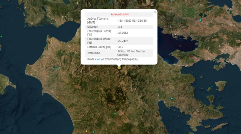 Σύμφωνα με την αυτόματη λύση του Γεωδυναμικού Ινστιτούτου του Εθνικού Αστεροσκοπείου Αθηνών, ο σεισμός είχε μέγεθος 3,3 βαθμών της κλίμακας Ρίχτερ και το επίκεντρο εντοπίστηκε οκτώ χιλιόμετρα νοτιοδυτικά του Φενεού Κορινθίας.