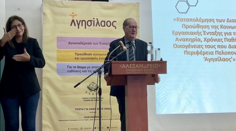 Αυτό επισήμανε, μεταξύ άλλων, ο περιφερειάρχης Πελοποννήσου Παναγιώτης Νίκας χαιρετίζοντας, το πρωί χθες Σάββατο 25 Νοεμβρίου, στην 1η Παμπελοποννησιακή Συνέλευση που διοργανώθηκε στο Λουτράκι -στο Αλεξάνδρειο Συνεδριακό Κέντρο- προκειμένου να παρουσιαστούν τα αποτελέσματα της δράσης “Αγησίλαος” για την καταπολέμηση των διακρίσεων και προώθηση της κοινωνικής και εργασιακής ένταξης για τα άτομα με αναπηρία, χρόνιες παθήσεις και τις οικογένειές τους που διαβιούν στην Περιφέρεια Πελοποννήσου.