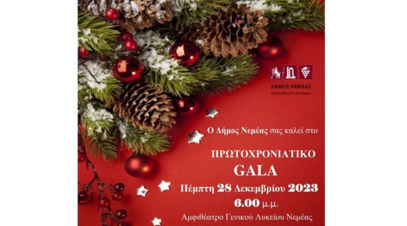 Το Gala θα πραγματοποιηθεί την Πέμπτη 28 Δεκεμβρίου 2023 στις 18:00 στο Αμφιθέατρο του Γενικού Λυκείου Νεμέας.