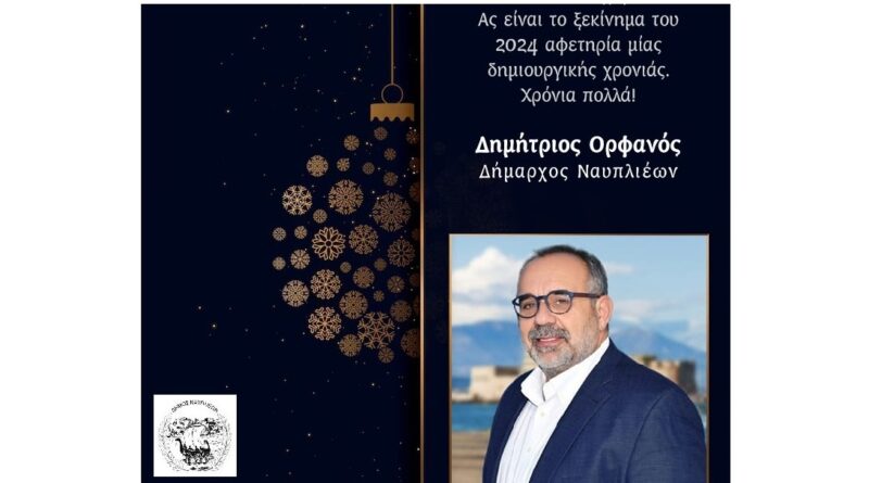 Δήμαρχος Ναυπλιέων Δ. Ορφανός: Το 2024 να σηματοδοτήσει ένα πιο αισιόδοξο αύριο για όλους μας