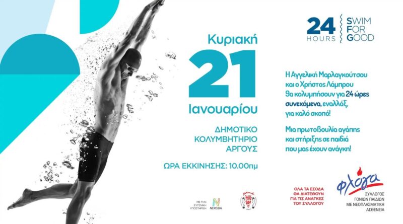 Η Αγγελική Μαρλαγκούτσου και ο Χρήστος Λάμπρου θα κολυμπήσουν συνεχόμενα, εναλλάξ, για 24 ώρες, στο Δημοτικό Κολυμβητήριο Άργους, για καλό σκοπό!