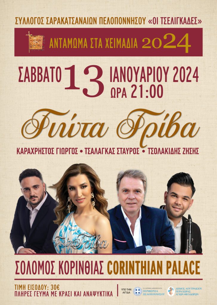 “Χειμωνιάτικο Αντάμωμα” του Συλλόγου Σαρακατσαναίων Πελοποννήσου το Σάββατο 13 Ιανουαρίου 2024 .Διήμερο εκδηλώσεων διοργανώνει ο Σύλλογος Σαρακατσαναίων Πελοποννήσου που αφορούν στην Κοπή Πίτας (Βασιλοκουλούρα – Μπουκουβάλα 2024