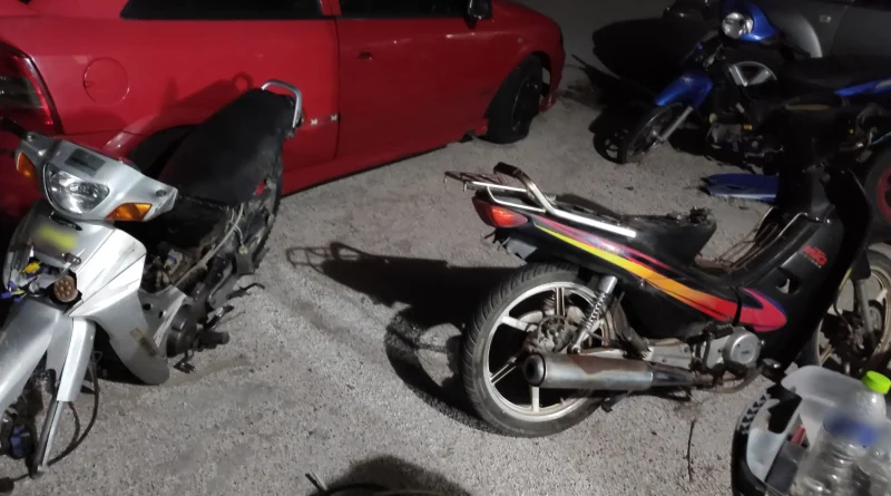 Επιπλέον, βρέθηκαν και κατασχέθηκαν εξαρτήματα δίκυκλων μοτοσυκλετών, καθώς και το πλαίσιο ενός εκ των αφαιρεθέντων δίκυκλων μοτοποδηλάτων.