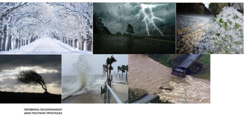 Ενημέρωση από τη Διεύθυνση Πολιτικής Προστασίας Περιφέρειας Πελοποννήσου για επικίνδυνα καιρικά φαινόμενα