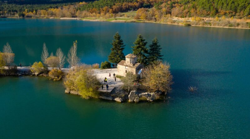 Ξεκινώντας την πεζοπορία μας λίγα μέτρα χαμηλότερα από το μοναστήρι, μπαίνουμε απευθείας στο πυκνό ελατόδασος και κινούμαστε βορειοδυτικά με κατεύθυνση προς τη θέση «Κερασιά» ή «καλύβα του Γκογκάκη» όπου και θα πραγματοποιήσουμε στάση για ξεκούραση και φωτογραφίες αφού το σημείο έχει πανοραμική θέα προς τη λίμνη και τις ψηλές κορφές. Συνεχίζουμε ομαλά πλέον προς τη θέση «Τουρκόβρυση» και από εκεί ξεκινάμε να κατηφορίζουμε ήπια προς τη λίμνη. Φθάνοντας τέλος στη λίμνη, δεν μπορούμε να παραλείψουμε την απαραίτητη επίσκεψη στο εκκλησάκι του Αγίου Φανουρίου που επικοινωνεί με τη στεριά με μια στενή λωρίδα γης και αναλόγως των καιρικών συνθηκών πολλές φορές μοιάζει σαν σκηνικό βγαλμένο από παραμύθι.