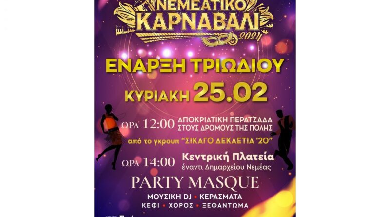 Έναρξη αποκριάτικων εκδηλώσεων στο Δήμο Νεμέας! – 25 Φεβρουαρίου