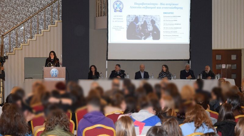 Η Διεύθυνση Αστυνομίας Αργολίδας διοργάνωσε χθες (23.2.2024) στο Άργος, ενημερωτική εκδήλωση με θέμα «Παραβατικότητα – Βία ανηλίκων, Απουσία σεβασμού και ενσυναίσθησης».