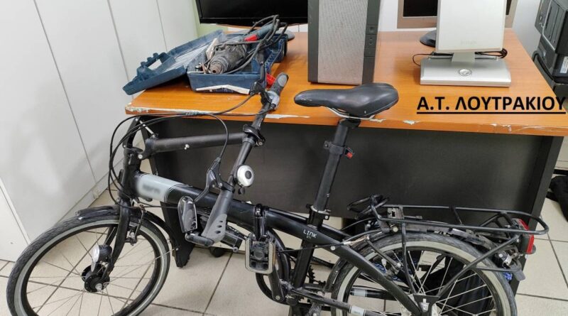Συνελήφθη ένας 43χρονος στο Λουτράκι, από αστυνομικούς του τμήματος Λουτρακίου, γιατί κατελήφθη να οδηγεί ποδήλατο, το οποίο ήταν κλεμμένο, σύμφωνα με την ανακοίνωση της Αστυνομίας.