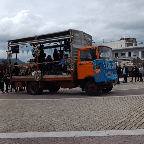 Το μεσημέρι πραγματοποιήθηκε αποκριάτικη βόλτα στους δρόμους της πόλης και πάρτι μασκέ.