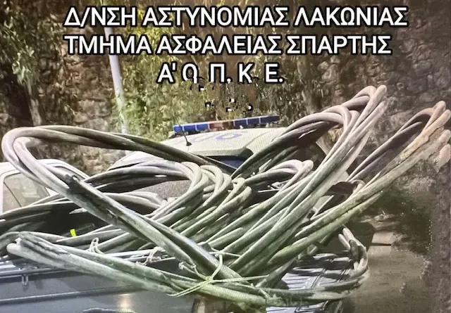 Από την εμπεριστατωμένη αστυνομική διερεύνηση που διεξήχθη από το Τμήμα Ασφάλειας Σπάρτης, προέκυψε ότι το καλώδιο που βρέθηκε στο όχημα ήταν μήκους -120- μέτρων και το είχαν αφαιρέσει, λίγο νωρίτερα, ο 20χρονος μαζί με 17χρονο, από εργοτάξιο στη Σπάρτη.
