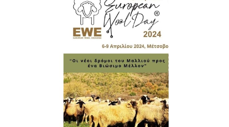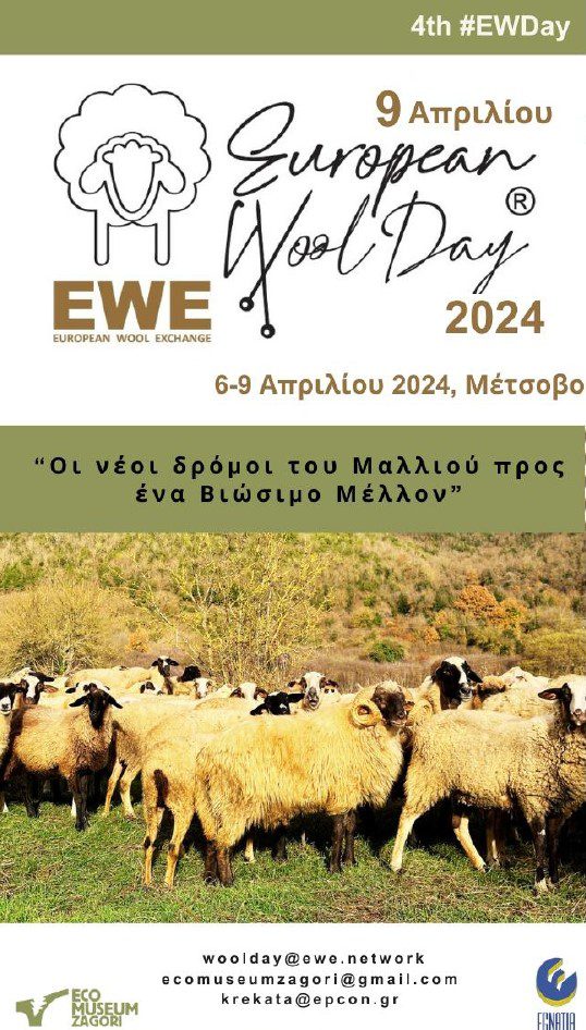 Η 4η Ευρωπαϊκή Ημέρα Μαλλιού και το συνέδριο-εργαστήριο «Οι νέοι δρόμοι του μαλλιού προς ένα βιώσιμο μέλλον» θα γίνει στο Μέτσοβο, 6, 7 & 9 Απρ 2024 και ειδικά την Ευρωπαϊκή Ημέρα Μαλλιού μπορεί να την δει κάποιος ζωντανά στο www.youtube.com/@ewefoundation-europeanwool255.
