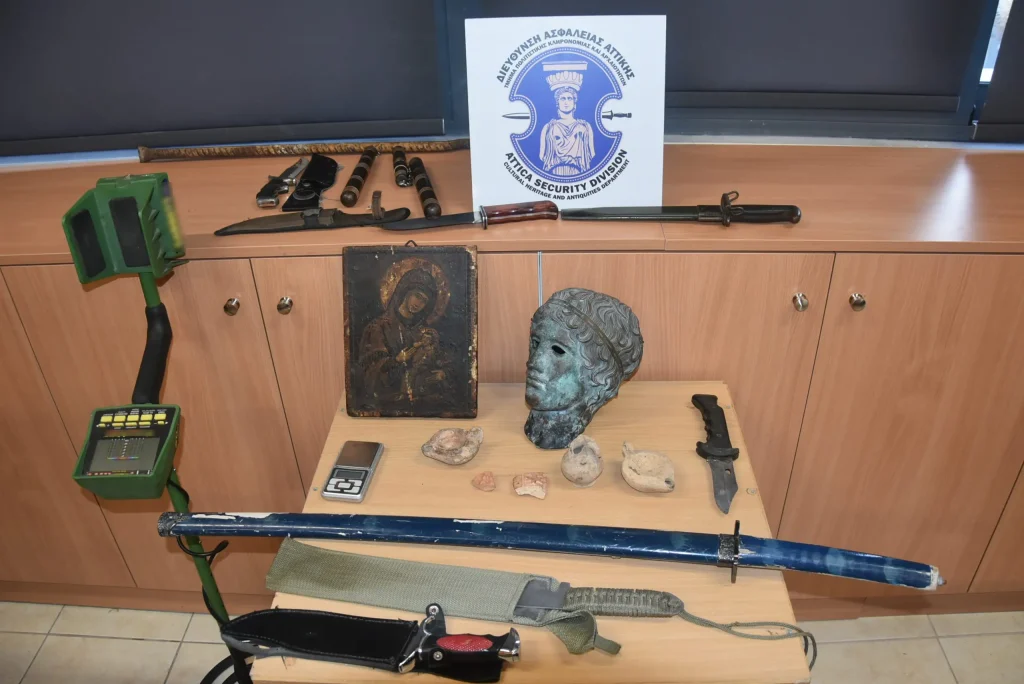 Από αστυνομικούς της Υποδιεύθυνσης Προστασίας Περιουσιακών Δικαιωμάτων Πολιτιστικής Κληρονομίας και Περιβάλλοντος της Διεύθυνσης Ασφάλειας Αττικής, συνελήφθησαν την Παρασκευή 5 Απριλίου 2024, στην Πάτρα, -2- ημεδαποί , ηλικίας, 54 και 73 ετών, κατηγορούμενοι για παράβαση της νομοθεσίας περί προστασίας των αρχαιοτήτων και εν γένει της πολιτιστικής κληρονομιάς και περί όπλων.