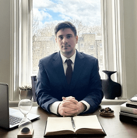 Στη συνέχεια, μεταπήδησε στον χώρο των χρηματοοικονομικών όπου εργάζεται ως οικονομικός αναλυτής. Η νομική του κατάρτιση, σε συνδυασμό με την καθημερινή τριβή με την χρηματοοικονομική αγορά στο μεγαλύτερο οικονομικό κέντρο της ηπείρου αποτελούν εχέγγυα της αντιπροσώπευσης των Ελλήνων στην πρωτεύουσα της Ευρώπης.