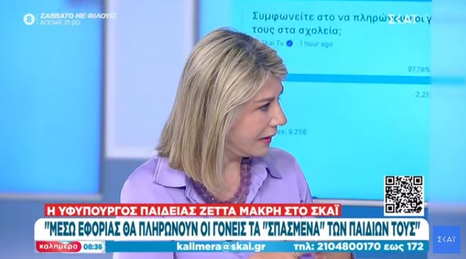 Με τον ίδιο τρόπο που πληρώνονται όλες οι παραβάσεις, μέσω της εφορίας, θα πληρώνουν οι γονείς τις φθορές που θα προκαλούν τα παιδιά τους», ανέφερε η Υφυπουργός Παιδείας Ζέττα Μακρή.