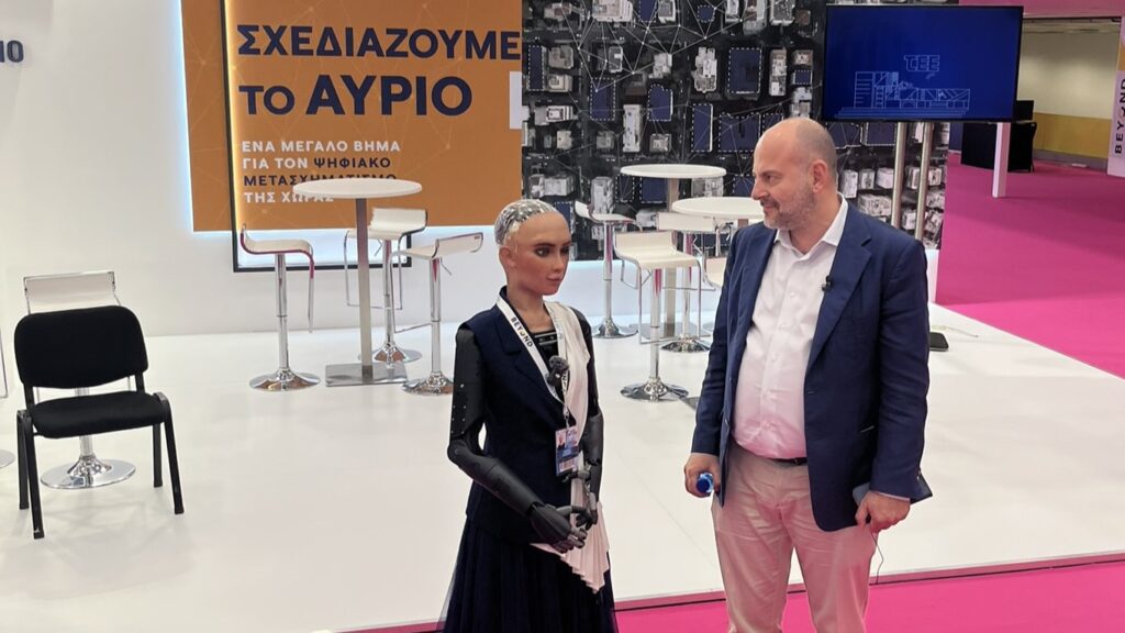 Μια ξεχωριστή στιγμή χαρακτήρισε την παρουσία του Προέδρου του ΤΕΕ Γιώργου Στασινού στο περίπτερο του ΤΕΕ στην έκθεση «BEYOND 2024» στη Θεσσαλονίκη, όταν συναντήθηκε με τη Sophiatherobot, το ανθρωποειδές ρομπότ με χρήση τεχνητής νοημοσύνης.