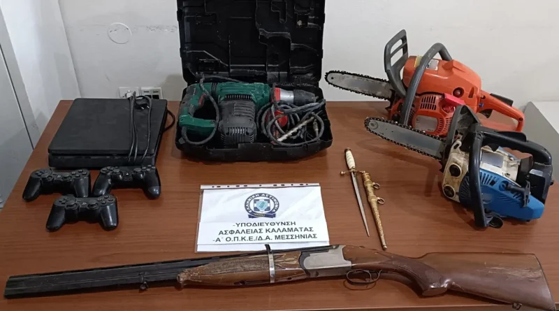 - Από το Αστυνομικό Τμήμα Μεσσήνης, -1- περίπτωση κλοπής εργαλείων από αποθήκη, που είχε γίνει κατά το χρονικό διάστημα από την 25.4.2024 έως και την 27.4.2024 σε τοπική κοινότητα του Δήμου Καλαμάτας. Για την υπόθεση αυτή, σχηματίσθηκε δικογραφία σε βάρος 18χρονου ημεδαπού, για κλοπή, η οποία περιλαμβάνει και άγνωστους συνεργούς του.