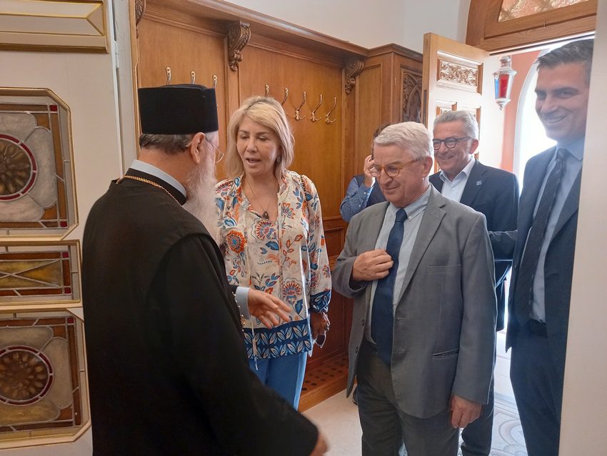 Από το Επισκοπείο της Ι. Μητροπόλεως μας ξεκίνησε την περιοδεία του στην Κορινθία, χθες Τρίτη, 28 Μαΐου 2024, Κλιμάκιο της Ν.Δ. αποτελούμενο από την Υφυπουργό Παιδείας, Θρησκευμάτων και Αθλητισμού κ. Ζέττα Μακρή, τον Υφυπουργό Πολιτισμού κ. Χρίστο Δήμα, τον Γ’ Αντιπρόεδρο της Βουλής των Ελλήνων κ. Αθανάσιο Μπούρα, την Γενική Γραμματέα Σύγχρονου Πολιτισμού, του Υπουργείου Πολιτισμού κ. Ελένη Δουνδουλάκη, τον Πρόεδρο της ΔΕΕΠ Κορινθίας κ. Δημήτριο Σουφρίλα και λοιπούς επιτελείς του κυβερνώντος Κόμματος ενόψει των επικείμενων Ευρωεκλογών.