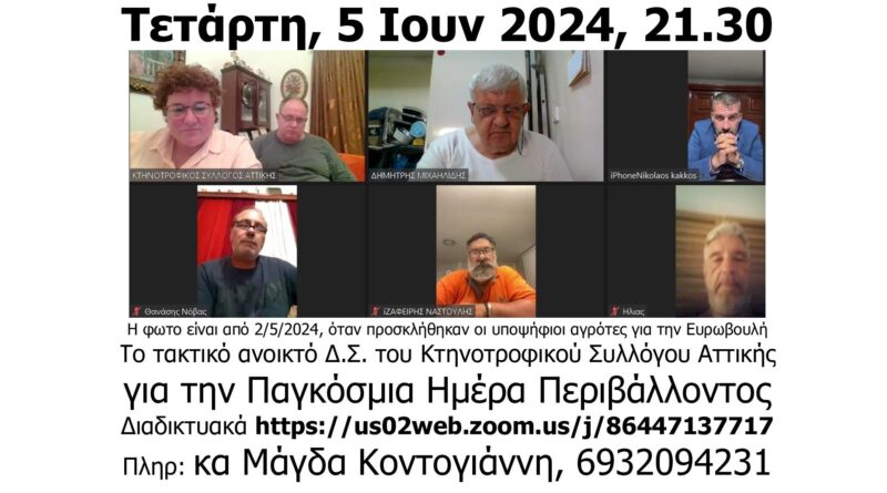 Η Παγκόσμια Ημέρα Περιβάλλοντος, 5 Ιουν 2024, μοιάζει σαν μια ιδιότυπη «Ημέρα μνήμης» των υπό εξαφάνιση περιαστικών κτηνοτρόφων, που θα οδηγήσει σε κατάρρευση τις ανισόρροπες τεχνητές υπερσυγκεντρώσεις, που νεκρώνουν το έδαφος, μολύνουν τον Σαρωνικό, μειώνουν την βιοποικιλότητα, υπερπαράγουν «βιομηχανικά» για να εξυπηρετήσουν την κερδοφορία των παγκοσμιοποιητών, αλλοιώνουν τις συμπεριφορές, εξαφανίζουν τον πολιτισμό μας, αλλάζουν το κλίμα, καταστρέφουν τους ντόπιους κτηνοτρόφους κλπ