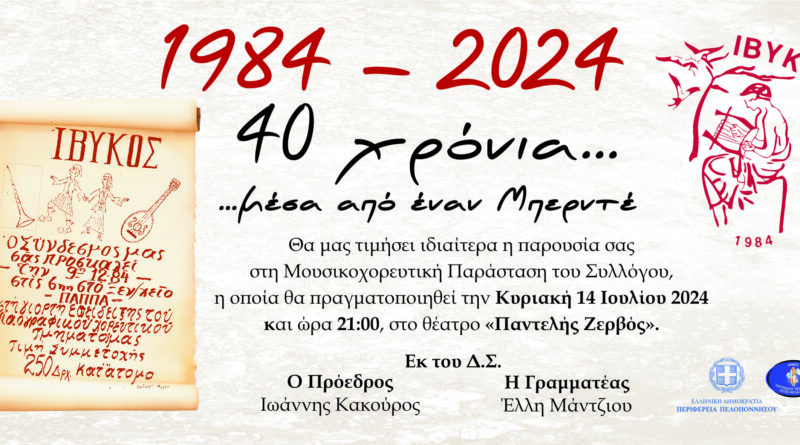 “ΙΒΥΚΟΣ” 1984-2024, “40 χρόνια…μέσα από έναν Μπερντέ” Μουσικοχορευτική Παράσταση