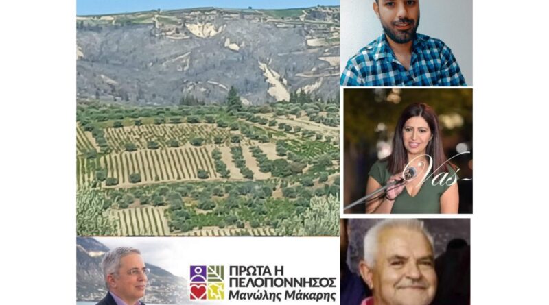 Ο περιφερειακός σύμβουλος Γιάννης Σιάτος, η Αγγελική Χούπη και  ο Ανδρέας Παπαδόπουλος, μέλη της περιφερειακής παράταξης “Πρώτα η Πελοπόννησος-Μανώλης Μάκαρης” επισκέφτηκαν στις 16/7 από νωρίς το απόγευμα τις καμένες εκτάσεις στη Στιμάγκα και το Κούτσι.