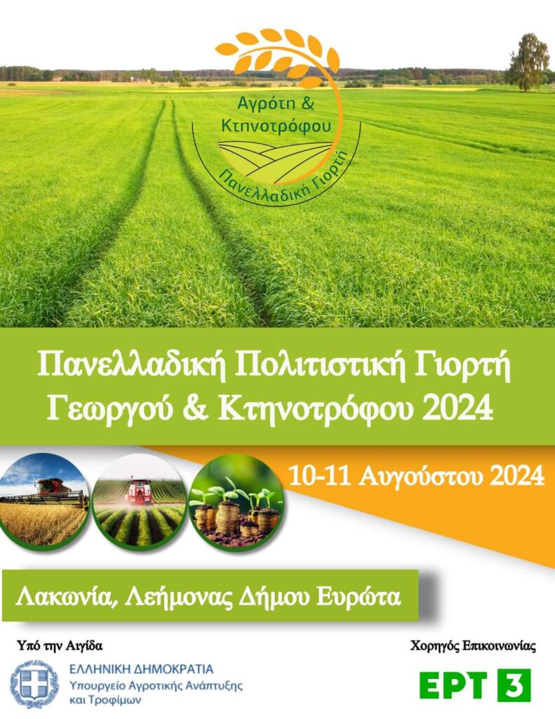 Η 2η Πανελλαδική Πολιτιστική Γιορτή Γεωργού & Κτηνοτρόφου 2024 προσκαλεί όλους στο χωριό Λεήμονας, Δήμου Ευρώτα, Λακωνίας το ΣαββατοΚύριακο 10 & 11 Αυγ 2024. Πληροφ: κ Ι. Σαμαρτζής, 6970515616, sillogos.leimonas@gmail.com