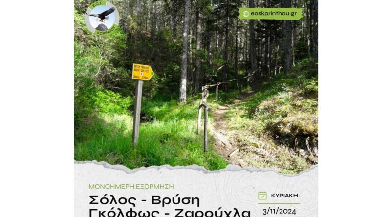 Ο ΕΟΣ Κορίνθου διοργανώνει πεζοπορική εξόρμηση 🍁σε ένα όμορφο και ευκολοβάδιστο μονοπάτι, στα υπέροχα δάση του Χελμού. Ξεκινώντας από το ιστορικό χωριό Σόλος, όπου το σπίτι του οπλαρχηγού Σολιώτη, μέσα από δασωμένη διαδρομή, περνώντας από τη πολυθρύλυτη βρύση της Γκόλφως, εκεί όπου συναντώνται ο μύθος με την ομορφιά και κυκλώνοντας τη βουνοκορφή του Προφήτη Ηλία, θα κατευθυνθούμε προς την Ζαρούχλα. Εκεί μέσα στο δάσος της μαύρης πεύκης, του ελάτου🌲 και των πλούσιων φυλλοβόλων 🌳 κάθε φθινόπωρο φυτρώνουν άπειρα μανιτάρια 🍄, πολλά από τα οποία είναι εδώδιμα και προσφέρουν μοναδικές γευστικές απολαύσεις.