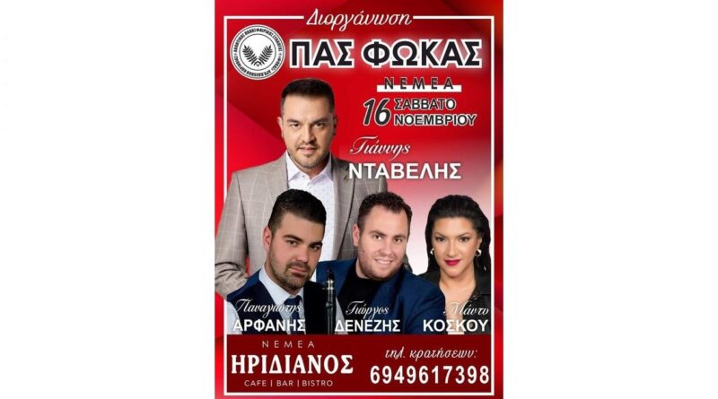 Ο ΠΑΣ ΦΩΚΑΣ Αρχαίων Κλεωνών διοργανώνει χοροεσπερίδα το Σάββατο 16 Νοεμβρίου