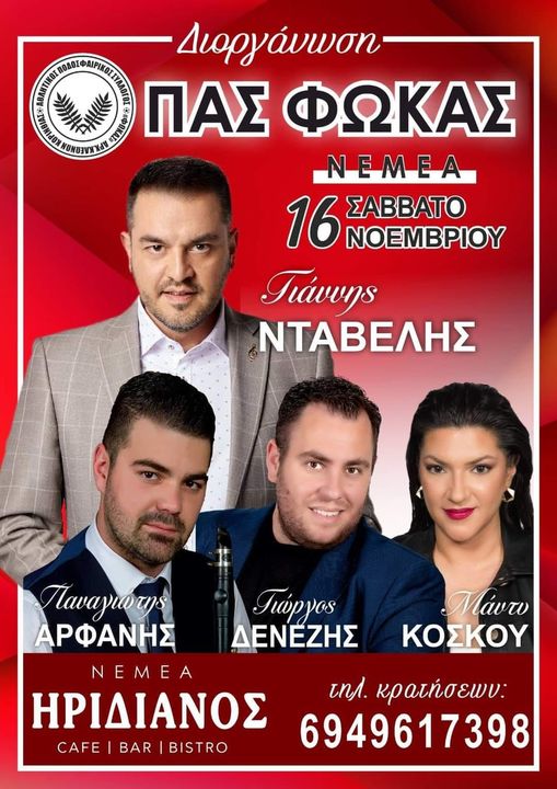 Είμαστε στην ευχαρίστηση θέση να ανακοινώσουμε σε όλους τους φίλους μας, ότι η ποδοσφαιρική ομάδα του χωριού μας, Π.Α.Σ. “ΦΩΚΑΣ” Αρχαίων Κλεωνών, διοργανώνει, το Σάββατο 16 Νοεμβρίου 2024 στο cafe “Ηριδιανός”, χοροεσπερίδα, για να γλεντήσουμε όλοι μαζί με πολύ κέφι, τραγούδι, χορό και δυνατό συγκρότημα!