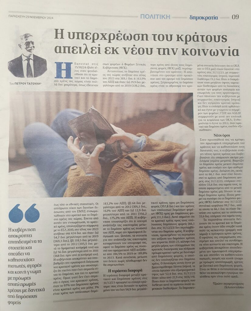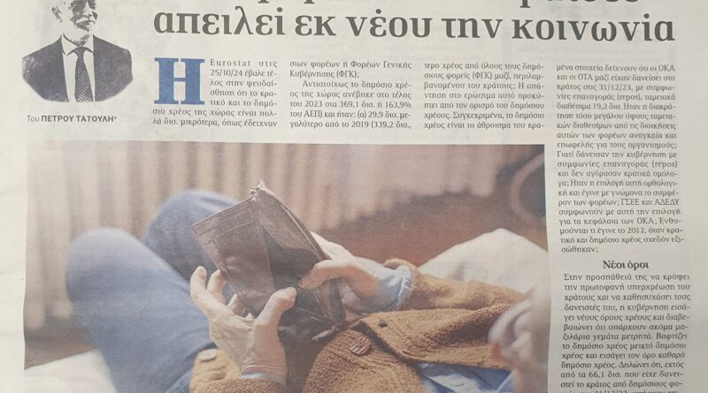 Τατούλης: Ο εφιάλτης της υπερχρέωσης του Κράτους επιστρέφει και απειλεί να συνθλίψει εκ νέου κοινωνία και οικονομία;