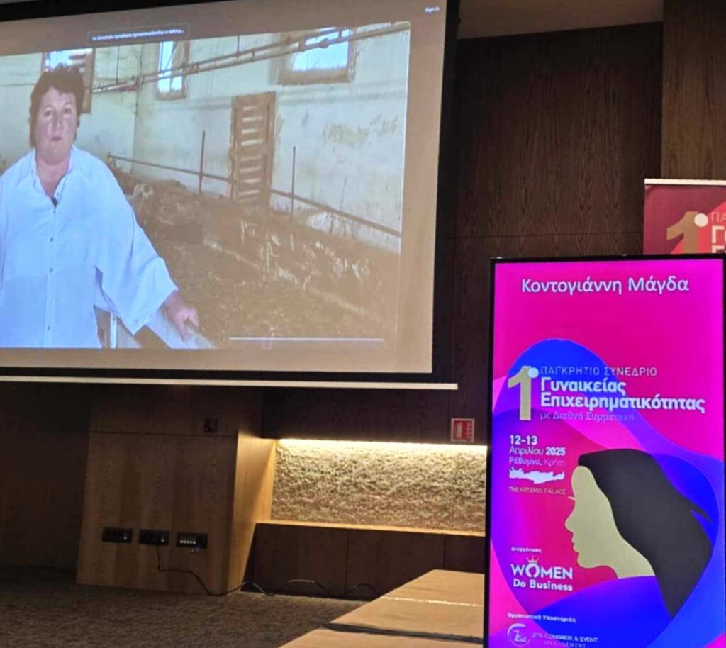 Η κα Μάγδα Κοντογιάννη, στην διαδικτυακή της παρέμβαση μέσα από το «Βουστάσιο Κοντογιάννη, Μενίδι» ήταν χειμαρρώδης στην θεματική «Αγροδιατροφή» του 1ου Παγκρήτιου Συνεδρίου Γυναικείας Επιχειρηματικότητας και «σάρωσε» τους συμμετέχοντες συμπαρασύροντάς τους με την αυθεντικότητα και την δυναμική της παρέμβαση.