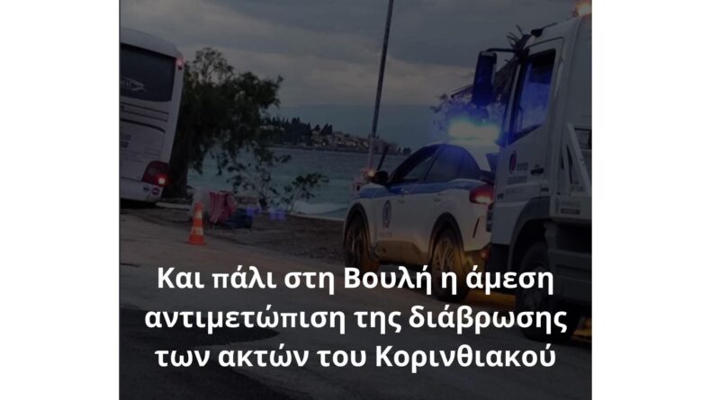 Ψυχογιός: Και πάλι στη Βουλή η άμεση αντιμετώπιση της διάβρωσης των ακτών του Κορινθιακού!