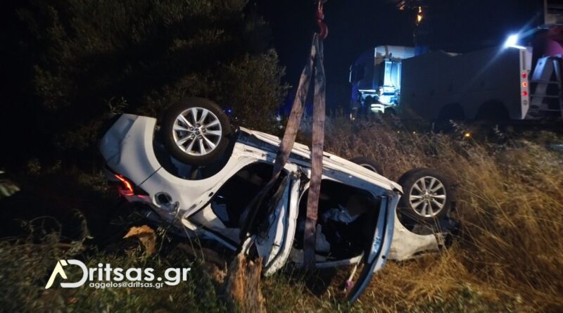 Το αυτοκίνητο παρέκκλινε της πορείας του και αφού διένυσε μια απόσταση περίπου 60 μέτρων, έκοψε τέσσερις ελιές και κατέληξε αναποδογυρισμένο μέσα σε κτήμα με ελιές.
