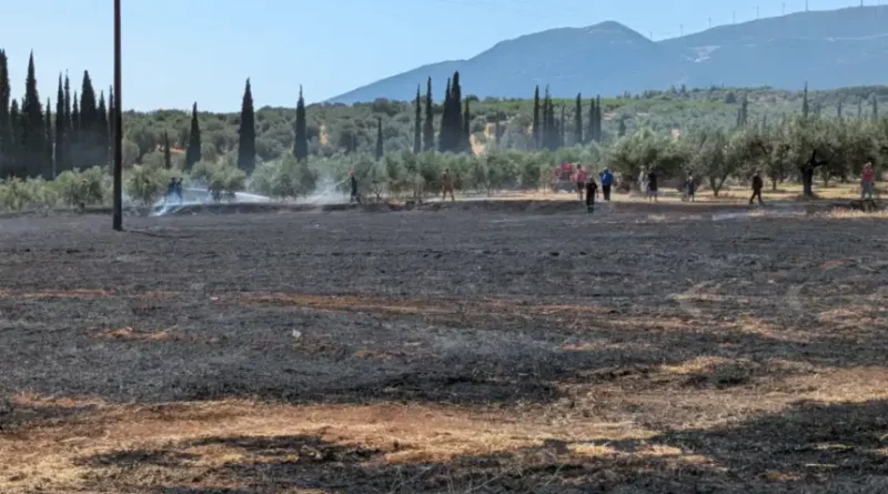 Πυρκαγιά ξέσπασε το μεσημέρι της Παρασκευής σε αγροτεμάχια με καλαμιές και ελαιόδεντρα επί της ΠΕΘ Κορίνθου -Άργους λίγο πριν τον Αγιο Βασίλειο .Δύο οχήματα του SOSTE TO ,ένα όχημα της Πυρασφάλεια Αθικίων και δύο οχήματα της Π.Υ.Κορίνθου επενέβησαν άμεσα και παρά τον δυνατό αέρα έθεσαν γρήγορα τη φωτιά υπό πλήρη έλεγχο. Πολύτιμη ήταν και η βοήθεια των ιδιοκτητών παρακείμενων ιδιοκτησιών κ.κ.Κατσίγιαννη Δημητρίου και Σαγγιώτη Ιωάννη τους οποίους ευχαριστούμε θερμά . Κάηκαν περίπου 5 στρέμματα θερισμένη καλαμιά και 10 μικρά ελαιόδεντρα.