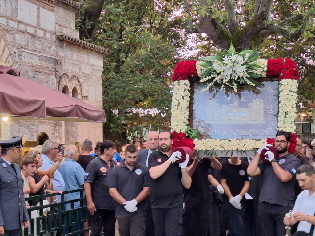 Νωρίτερα, τελέστηκε Μέγας Αρχιερατικός Εσπερινός, προεξάρχοντος του Θεοφιλεστάτου Επισκόπου Τεγέας κ. Θεοκλήτου, ενώ στις 8:00 μ.μ. πραγματοποιήθηκε η Λιτάνευση της Εικόνας της Παναγίας.