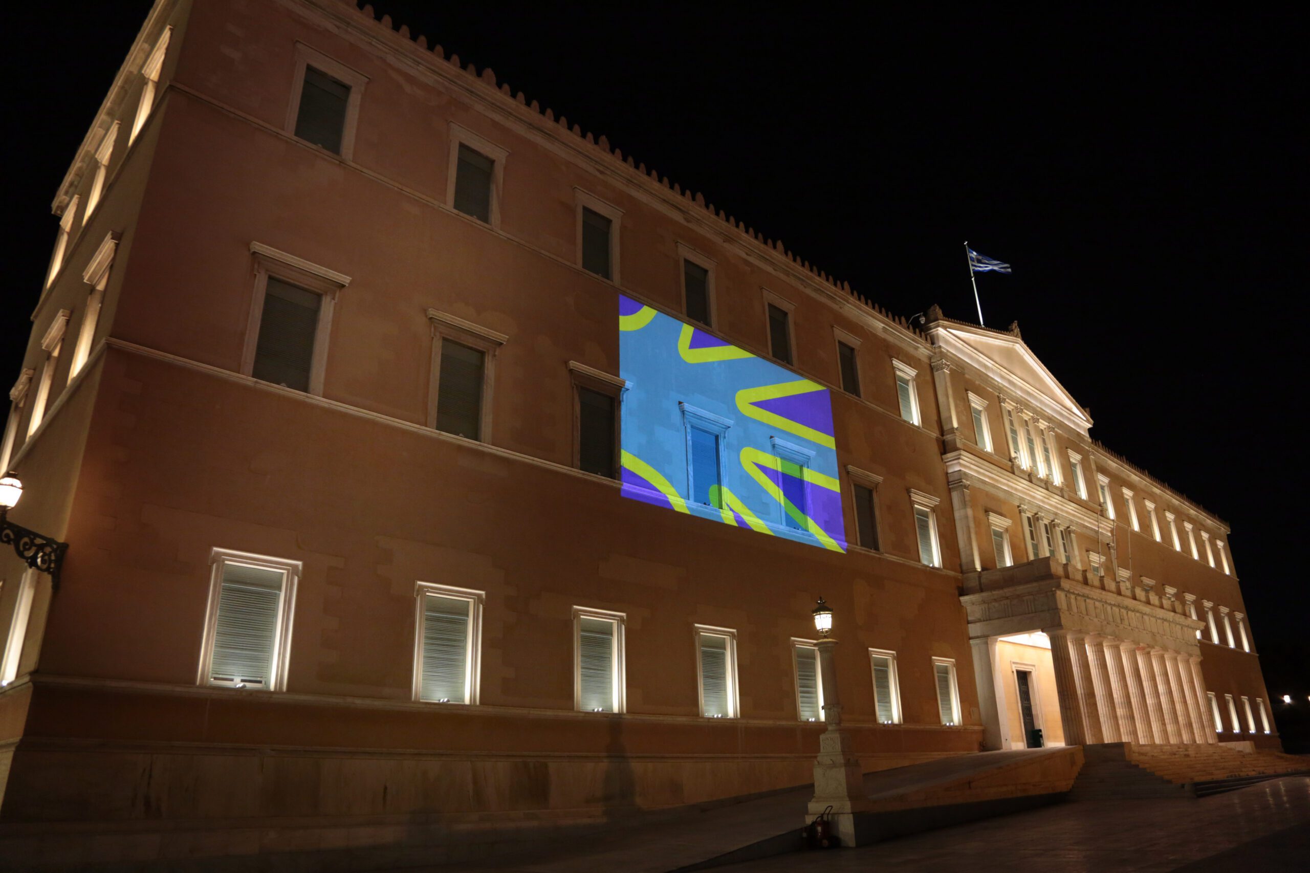 Η πρόσοψη της Βουλής φωταγωγείται για την Διεθνή Ημέρα Νοηματικών Γλωσσών