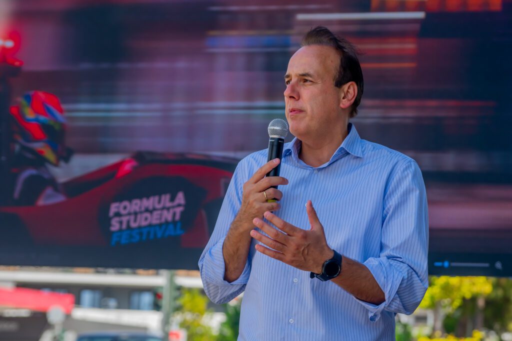 Ακολούθως ο κ. Νίκος Μερτέκης, εκδότης του Car and Driver, τόνισε τη χαρά του για τη διεξαγωγή του φεστιβάλ και τη στήριξη στο θεσμό: «Σας καλωσορίζω στο FormulaStudentFestival 2025. Θα ήθελα να σταθώ στο ότι σήμερα έχετε πάρει πληροφορία και νουθεσίας από εμάς, και θέλω να κρατήσετε και να φιλτράρετε αυτά που θέλετε και χρειάζεστε. Να έχετε το μυαλό στο κεφάλι σας, κι αν πέσετε και ματώσετε, να σηκωθείτε και να κυνηγήσετε τα όνειρά σας. Η ζωή δεν είναι εύκολη, δεν είναι πάντα ήπια η θάλασσα, έχει και φορτούνες. Εσείς να έχετε επιμονή και να κρατήσετε το όνειρό σας».