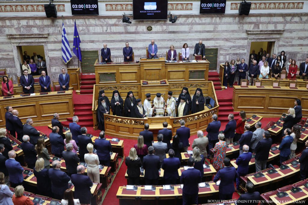 Πραγματοποιήθηκε σήμερα στην Ολομέλεια της Βουλής των Ελλήνων η καθιερωμένη Τελετή Αγιασμού για την έναρξη των εργασιών της Γ΄ Συνόδου της Κ΄ Κοινοβουλευτικής Περιόδου από τον Αρχιεπίσκοπο Αθηνών και Πάσης Ελλάδος κ. Ιερώνυμο και μέλη της Ιεράς Συνόδου.