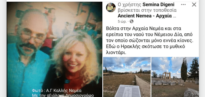 Όταν με ενημέρωσε απόψε η ψυχολόγος Τόνια Κατσάνου μια σημαντική Νεμεατισσα που χρόνια τώρα βρίσκεται στην πρωτοπορία τών κοινωνικών αγώνων με έδρα την Αθήνα,για την επίσκεψη τής Σεμίνας Διγενή και για τα όσα είχε επισημάνει στην προσωπική της σελίδα για την Αρχαία Νεμέα,στην σκέψη μου ήρθαν όλα αυτά πού σας περιέγραψα.