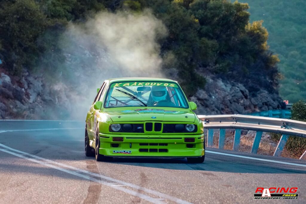 Στην ομάδα Ε επική μάχη για ένα εκατοστό του δευτερολέπτου στα 12,8 χλμ της συνολικής διαδρομής του αγώνα με πρώτο τον Ε.Καλκούνο με BMW M3 ,μπροστά από τον Κ.Ντόφη με Ford Escort Mk2.