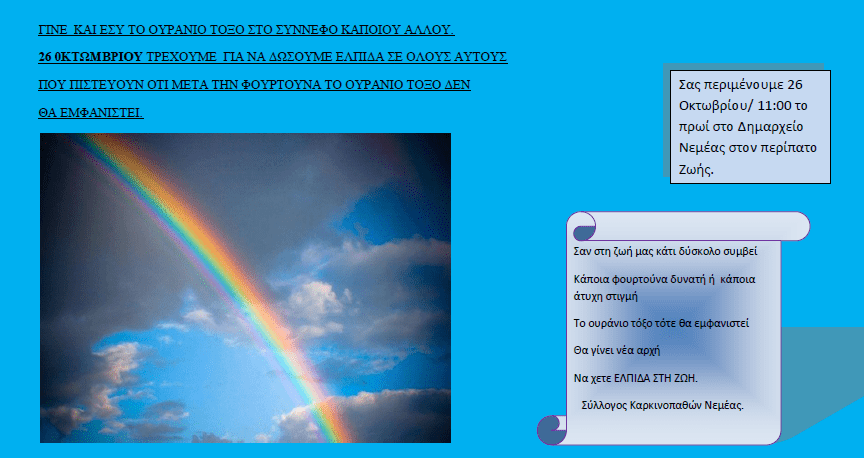 Σας περιμένουμε 26 Οκτωβρίου 11.00 το πρωί στο Δημαρχείο Νεμέας στον περίπατο Ζωής.