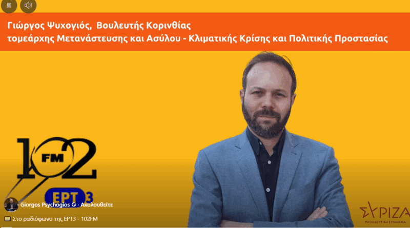 Σε ραδιοφωνική συνέντευξη στο ραδιόφωνο της ΕΡΤ3 102FM, ο βουλευτής Κορινθίας του ΣΥΡΙΖΑ-ΠΣ, Γιώργος Ψυχογιός, υπογράμμισε ότι ο ΣΥΡΙΖΑ οφείλει «να είναι μέρος της λύσης και καταλύτης», με θεσμική σοβαρότητα, σαφείς συμμαχίες και συγκεκριμένο πρόγραμμα που απαντά στα πιεστικά κοινωνικά ζητήματα.