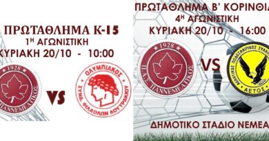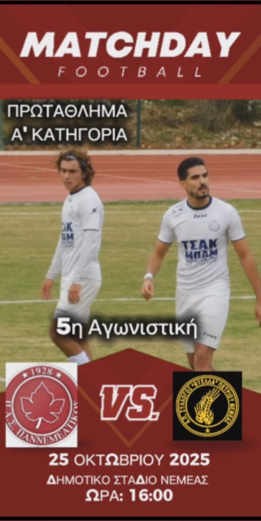 Όλοι μαζί στο Δημοτικό Στάδιο Νεμέας, να απολαύσουμε μια όμορφη “μονομαχία” ανάμεσα σε δύο συλλόγους, που έχουν ξεκινήσει μάλιστα ιδιαίτερα καλά τη φετινή σεζόν !!!