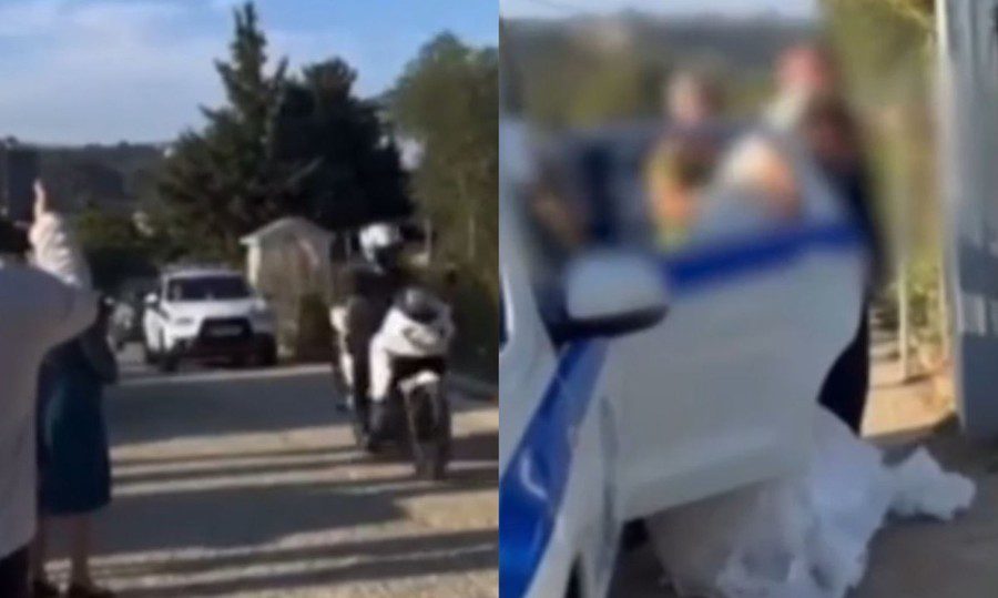 Τα πλάνα με τη νύφη να φτάνει στο προαύλιο της εκκλησίας με το περιπολικό και μπροστά να προπορεύεται μια μοτοσικλέτα της ΕΛ.ΑΣ. έκαναν το γύρο του Διαδικτύου, προκαλώντας σάλο.