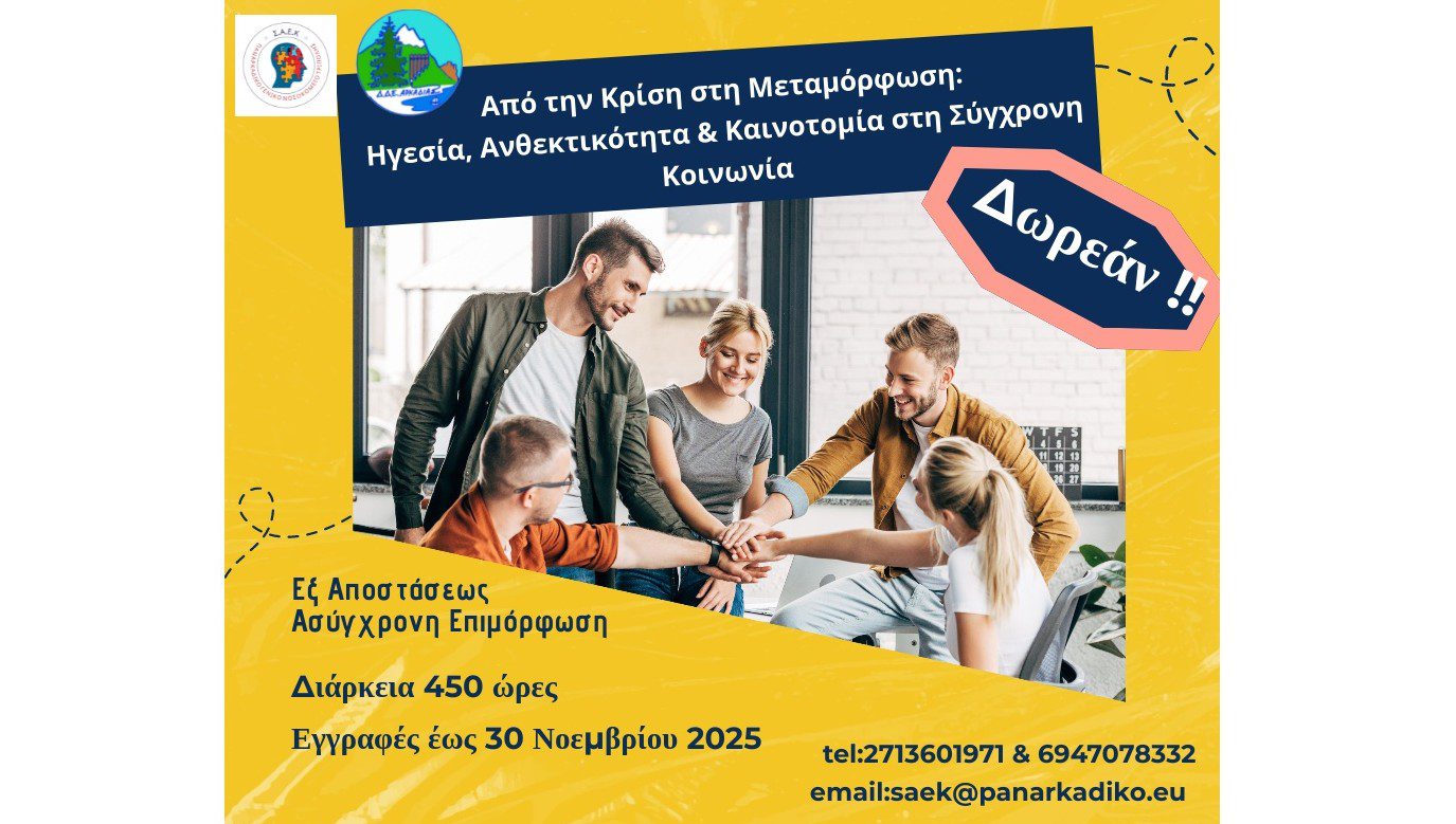 Δωρεάν επιμορφωτικό πρόγραμμα με θέμα: «Από την Κρίση στη Μεταμόρφωση: Ηγεσία, Ανθεκτικότητα & Καινοτομία στη Σύγχρονη Κοινωνία»