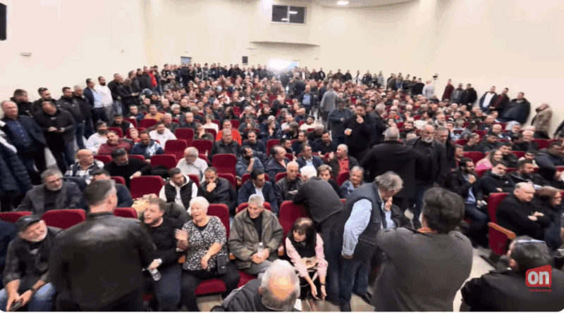 Η προσέλευση ήταν μαζική με την αίθουσα να γεμίζει, με δεκάδες να παρακολουθούν όρθιοι, ενώ πολλοί ακόμη παρέμειναν εκτός κτηρίου, ακούγοντας τις τοποθετήσεις από τη μεγαφωνική εγκατάσταση που είχε στηθεί.